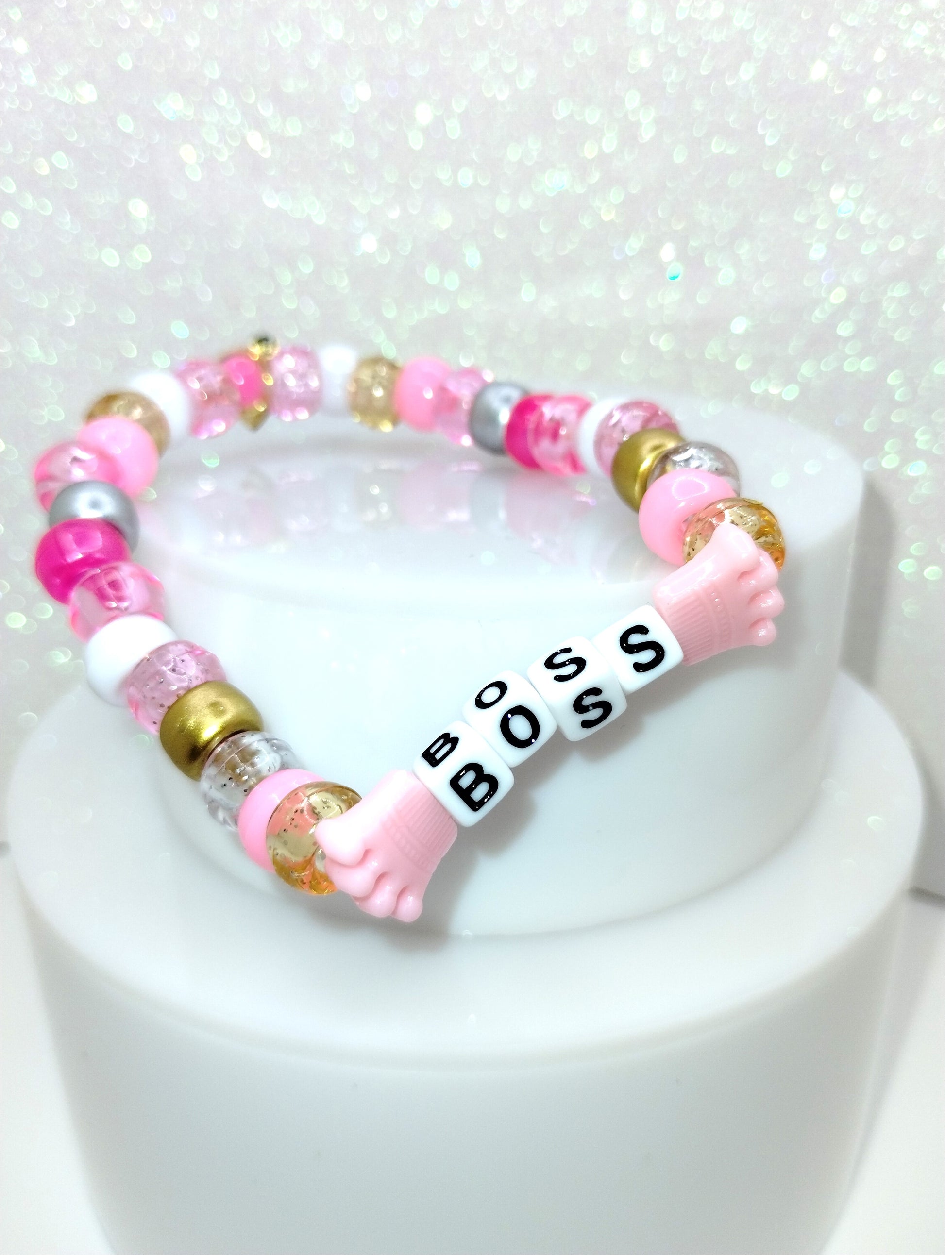 Elevate your style with the BOSS Bracelet featuring a soft pink crown. Make a bold statement with this colorful accessory that exudes confidence and leadership. Own your boss status with this striking bracelet.