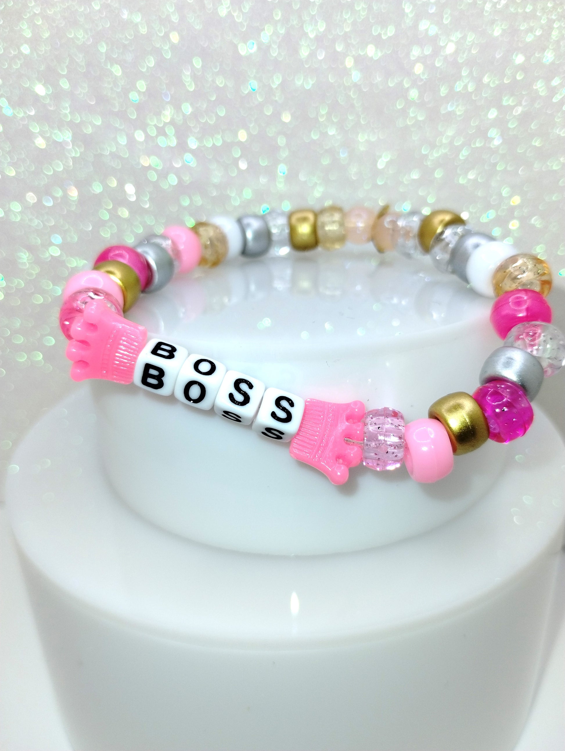 Elevate your style with the BOSS Bracelet featuring a pink crown. Make a bold statement with this colorful accessory that exudes confidence and leadership. Own your boss status with this striking bracelet.