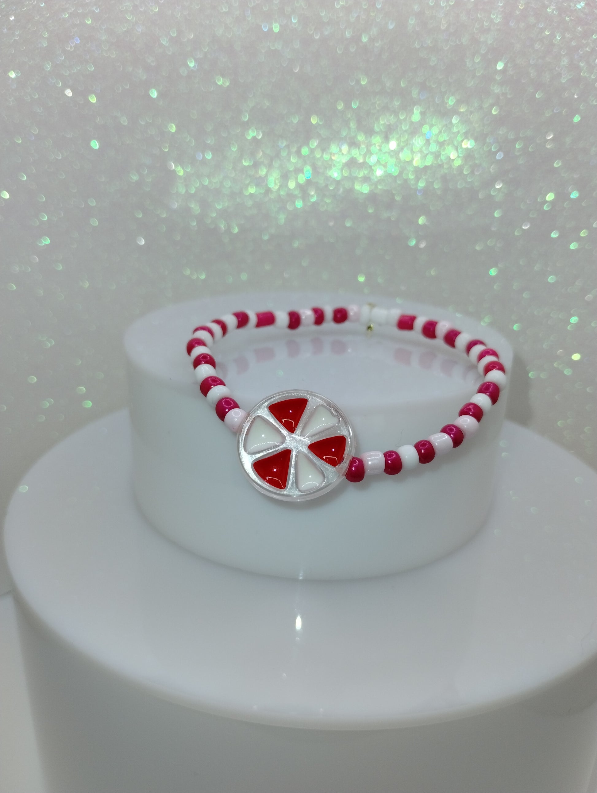 Micro Bead Bracelet w/Red & White Wheel Charm