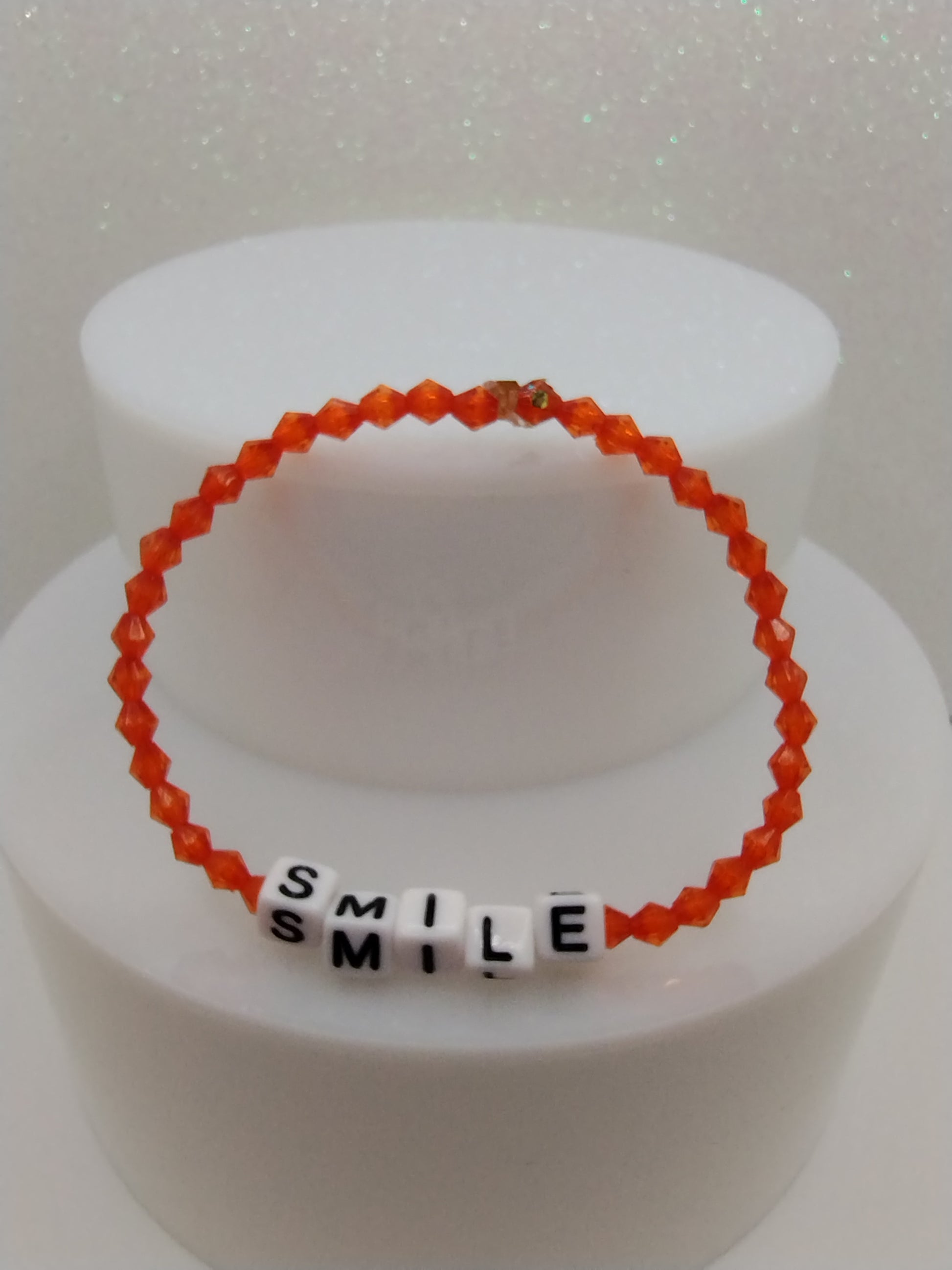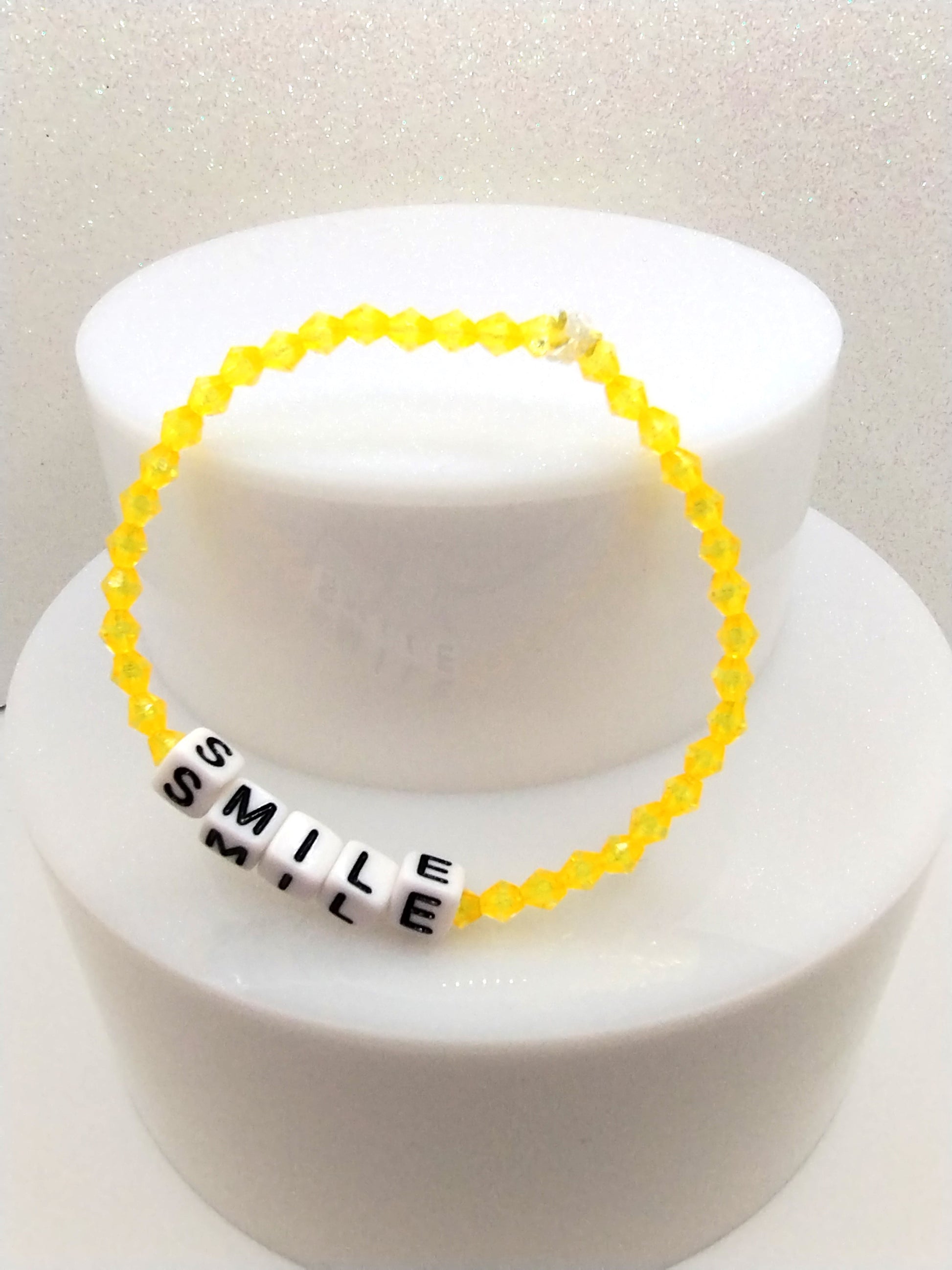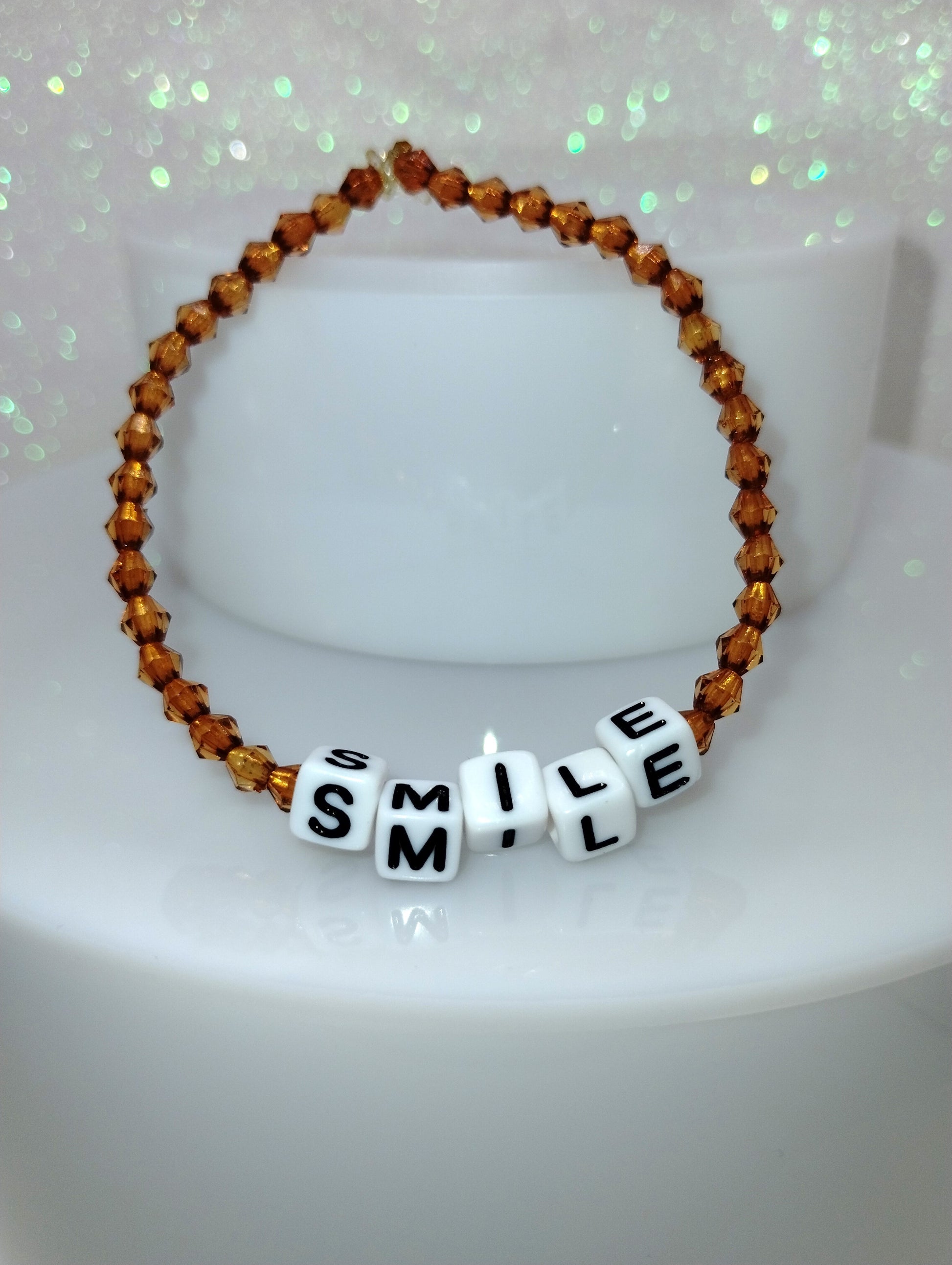 - Crystal acrylic beads with "Smile" crafted at the bottom